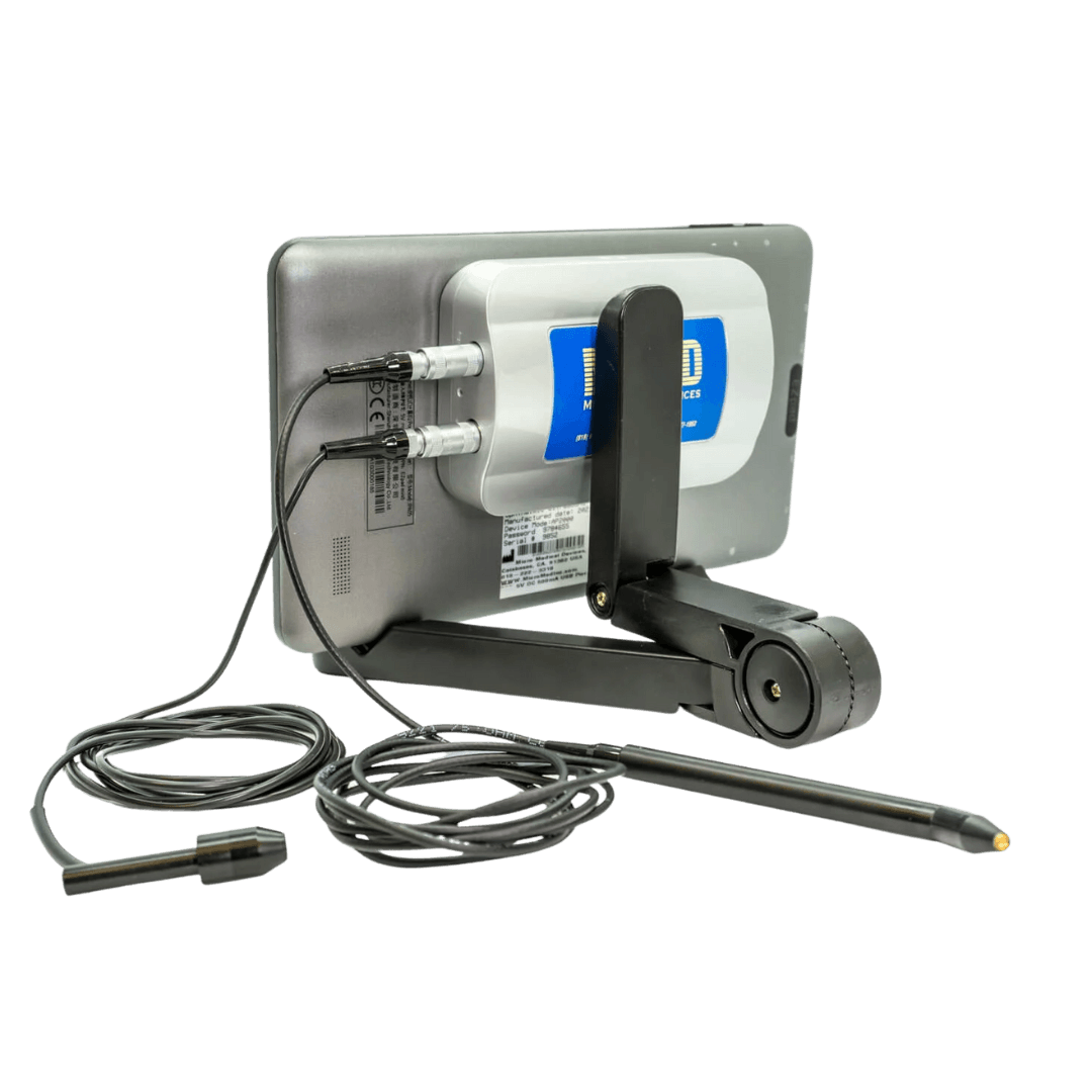 Part of our portable set, the Pachymeter probe measures the thickness of the cornea at a best-in-class, 50 MHz frequency using disposable tips. Clinical applications include use in pre-testing for cataract and refractive surgery as well as assessing Keratoconus and as part of the exam for glaucoma-suspect patients.