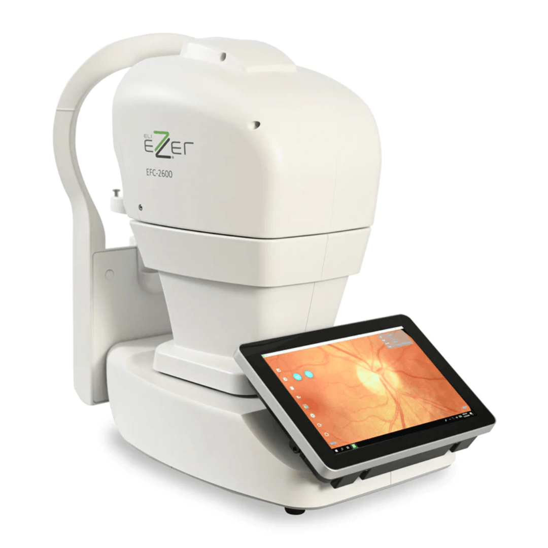 The EFC-2600 is a top of the line fully automated non-mydriatic retinal camera with an advanced 3D tracking system capable of capturing high-definition retinal images in any eye care practice. The camera quickly delivers consistent colored ocular fundus images using multiple imaging modalities. The 45° field of view images help streamline screening of retinal abnormalities and early detection of diabetic retinopathy, glaucoma, macular degeneration and other growing disease. As easy-to-handle equipment, any eye care center can use the EFC-2600 to make a diagnosis without the need for a specialist. If an anomaly is detected, the telemedicine feature on the EFC-2600 is optimal for quickly obtaining the opinion of remote specialists.